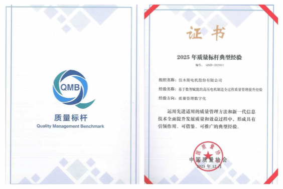 数智赋能铸精品,质量标杆领前行。此次入选既是对佳电股份技术实力与行业地位的权威认证,更是推动高质量发展的全新起点。未来,佳电股份将以质量标杆为基石,持续深化全链路数字化治理,推动质量管理从“被动管控”向“预见性价值创造”跨越,为建设“质量强国”注入坚实的佳电力量。
